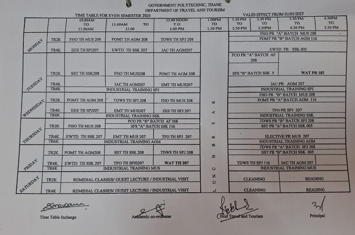Diploma in Travel and Tourism is a three-year full-time course offered by Maharashtra State Board of Technical Education, Mumbai and approved by All India Council for Technical Education (AICTE).